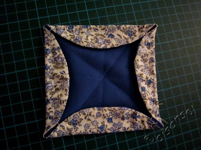 Una vez planteadas las cuatro esquinas, aseguramos con una puntada en el centro y volvemos a planchar.