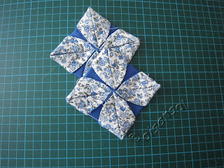 Doblamos las cuatro puntas hacia dentro, haciéndolas coincidir con el centro del cuadrado